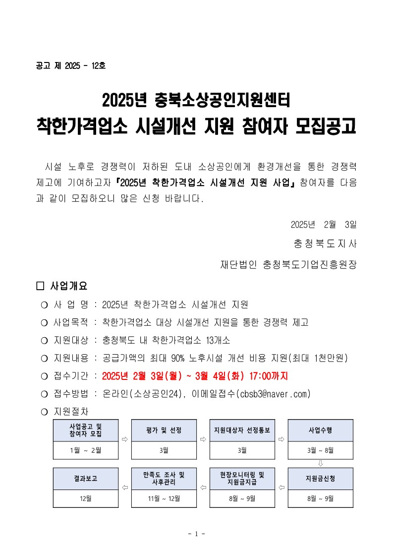 2025년 착한가격업소 시설개선 지원 참여자 모집공고