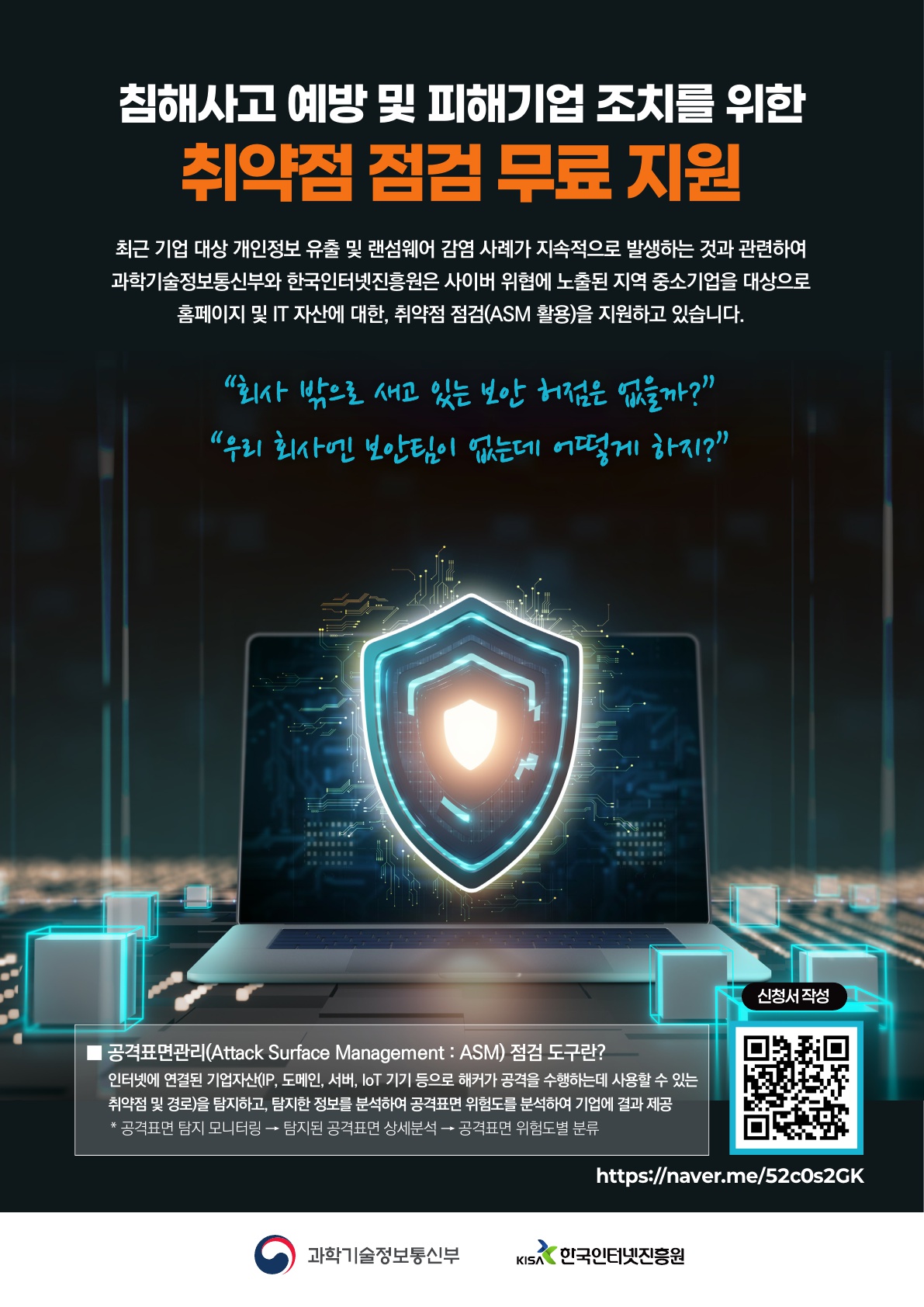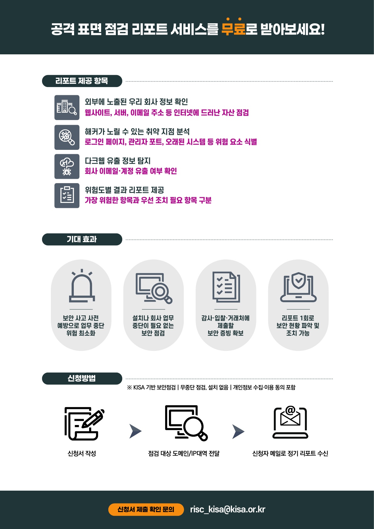 [한국인터넷진흥원] 침해사고 예방 및 피해기업 조치를 위한 「취약점 점검 무료 지원사업」안내